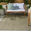 [This review was collected as part of a promotion.] The Nourison Tulum rug in Olive adds a crisp, boho-chic vibe to any patio. It’s remarkably durable, has great padding, easy to clean, and the intricate pattern hides dirt well for outdoors especially! A perfect, stylish outdoor upgrade. Also it's light to move around or store