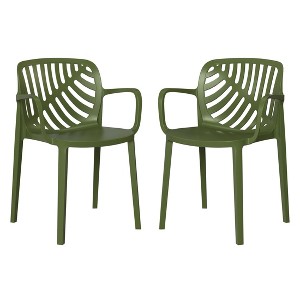 WestinTrends Playa Outdoor Modern Stackable Patio Dining Armchairs (Set of 2), Olive Green