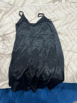 This satin camisole nightgown with front lace U-neck and deep V backless design, with adjustable straps, sleeveless