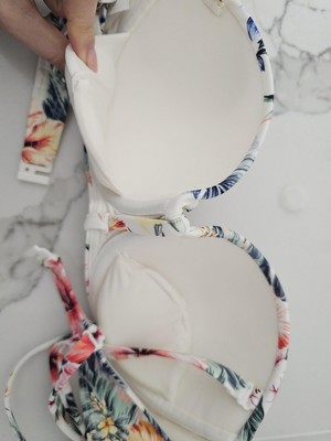 Feel confident and radiant in this stunning floral print bikini. * Underwire for support * Padded demi cups * Gathered detail at front center * Removable multiway straps can be worn four ways (regular, bandeau, crossover, halter) * Buckles at the back * 84% Polyamide, 16% Elastane. Imported. * Hand wash, no bleach, hang to dry * No dryer, iron, or dry clean