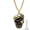 Men's 18k gold plated stainless steel skull with beret and eyepatch pendant. Thoughtfully designed for everyday wear and special moments, with a balanced profile that pairs easily with casual layers or evening looks. Each piece is produced with attention to proportion and comfort, emphasizing clean lines and subtle texture so it feels considered without being fussy. Wear it solo as a quiet statement or stack it with favorites to build a look that reflects your mood. Great as a gift or a personal update to your rotation; store in a soft pouch when not in use to help preserve the finish.