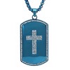 Men's blue ip stainless steel simulated diamond cross dog tag pendant. Thoughtfully designed for everyday wear and special moments, with a balanced profile that pairs easily with casual layers or evening looks. Each piece is produced with attention to proportion and comfort, emphasizing clean lines and subtle texture so it feels considered without being fussy. Wear it solo as a quiet statement or stack it with favorites to build a look that reflects your mood. Great as a gift or a personal update to your rotation; store in a soft pouch when not in use to help preserve the finish.