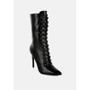 The croc textured boots are calf length and have a lace up detail which is simply stunning. Don't worry as the booties come with side zipper opening which makes it easy to wear. The high heel gives them an edgy look which is stylish and sexy. Outer material: Croc PU Lining Material: PU Outer sole: TPR Pointed Toe Stiletto Heel Lace Up Fastening Side Zipper Opening High Quality and Durable Construction Calf Length Boots Party Womens Footwear SH3336