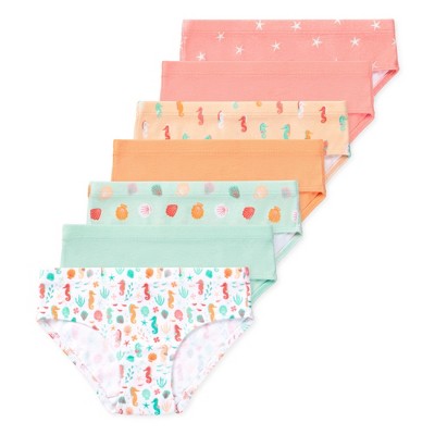 - 7 pack of girls bikini underwear. Multicolored. Children's sizes 2/3 to 9/10
