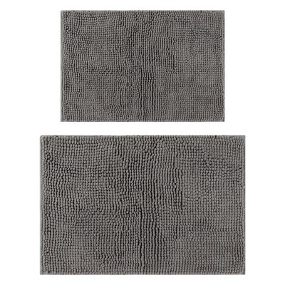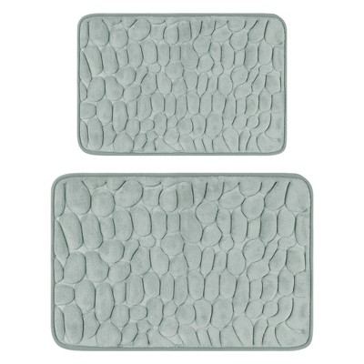 REGALWOVEN Memory Foam Water Absorbent Quick Dry Non-Skid Bottom Soft Bath Mats 2 Pcs Light Grey 16" x 24"/20" x 32"