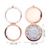 Item Function: 1. The quality glass mirror is selected, with moderate hardness, more durable, safe and light, and better comfortable touch than general acrylic materials. 2. This handy mirror is ideal for small spaces like bathrooms, desks, workspaces and more 3. It can be used as a personal mirror for applying makeup, lashes, brow shaping, shaving and other personal grooming needs 4. Gift for women,men or families on Christmas, Thanksgiving, Valentine's Day. Suitable for your family trip to pack all men, women toiletries. Makes a great gift for anyone who loves to travel. Specifications: Product Name: Makeup Mirror; Material: Metal, Glass; Color: Rose Gold Tone; Mirror Size: 6cm / 2.36"(D); Overall Size: 7x7x1cm / 2.76"x2.76"x0.39"(L*W*H); Package List: 1 Pc Makeup Mirror.
