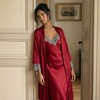 Product Name: Anna-Kaci Lounge Women's Satin Long Robe and Lace Trim Nightgown Set- Red,Medium