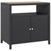 Outsunny Rattan Outdoor Storage Cabinet, Wicker Bar Table with Acacia Wood Countertop, Two Doors, Shelf, for Garden, Patio, Backyard, Black
