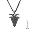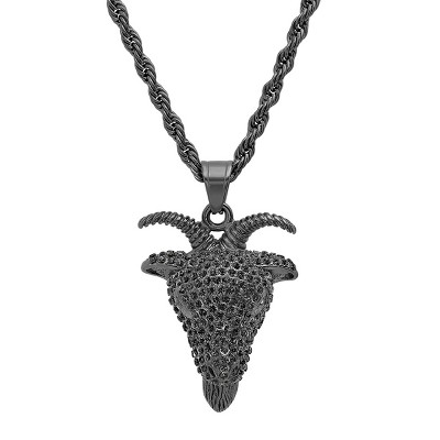 Men's black ip stainless steel and simulated red and red diamonds iced out goat head pendant. Thoughtfully designed for everyday wear and special moments, with a balanced profile that pairs easily with casual layers or evening looks. Each piece is produced with attention to proportion and comfort, emphasizing clean lines and subtle texture so it feels considered without being fussy. Wear it solo as a quiet statement or stack it with favorites to build a look that reflects your mood. Great as a gift or a personal update to your rotation; store in a soft pouch when not in use to help preserve the finish.