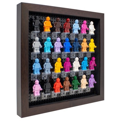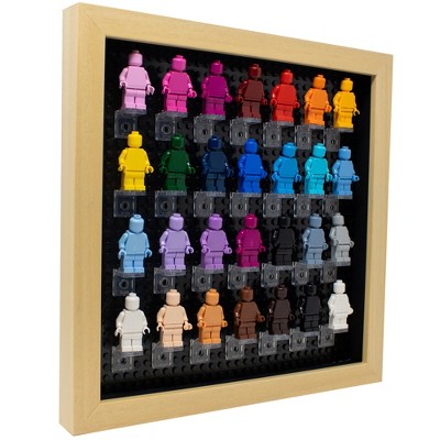 Display your block figures in style with this 12x12 figure display case. Crafted from real wood, this shadow box features a built-in building block baseplate, making it the perfect choice for collectors. Holds up to 28 block figures with the included 28 transparent plastic podiums (foot supports) designed for standard two-legged block figures. (Figurines are not included. ) The podiums keep your figures secure while offering a clean, minimalist look. This 12x12 shadow box includes a frame-grade acrylic front to protect your collection from dust and damage, keeping your figures pristine for years to come. The display case is perfect for both tabletop display and wall mounting, with all necessary hardware included. Showcase your collection in any room for a standout feature piece. Handcrafted in the USA, this natural wood shadow box is made from durable solid pine with a 1" wide and 1" deep moulding, ensuring both beauty and durability. Overall Dimensions: 12x12 inches, giving you extra space for a protective barrier around your figures. Show off your collection with this premium American-made shadow box, made to order to ensure top-quality craftsmanship in every piece. Ideal for collectors of block figures who want to display their collection in an elegant, protected frame.