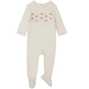 MiniMoi Baby and Toddler Girls Pretty Smocked and Bow-Trimmed Footie - 1 of 3