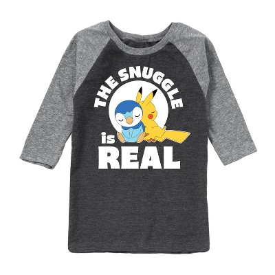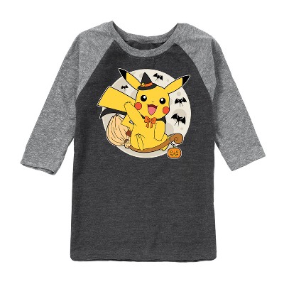 Boys' Pokémon Peeking Pikachu Raglan Graphic T-Shirt - Athletic Heather/Heather Black - Large