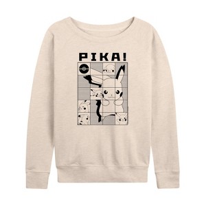 Women's Pokémon Pika Squares Lightweight French Terry Wide Neck Long Sleeve Graphic Shirt - Birch - 2 X-Large