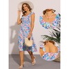 The dress is a perfect blend of style and comfort, crafted from 100% polyester for a lightweight feel. This boho-inspired dress features a sleeveless design with a smocked bodice and a flattering V-neck. The midi length and flowy a-line silhouette make it ideal for casual outings or beach vacations. The ruffle neck and layered hem add a touch of femininity, while the ditsy floral pattern keeps it trendy. Pair it with high heels for a chic vacation look or wear it casually for day-to-day activities. This versatile dress is a must-have for any woman's wardrobe, offering endless styling possibilities for various occasions.