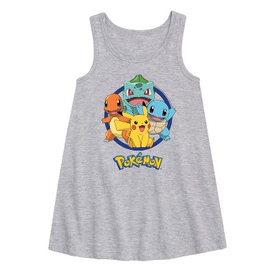 Pokémon - Gotta Catch Em All Starters - Youth Girls A-line Dress - Celebrate the essence of Pokemon's Pokémon with officially licensed apparel featuring unique designs crafted exclusively by Hybrid Apparel. Each piece brings beloved characters, iconic imagery, and memorable moments to life, offering Pokémon fans a one-of-a-kind way to showcase their passion.