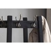 Black finished wood coat rack with 3-tier storage shelves.
