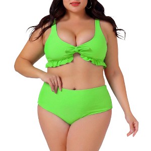 High waist, tummy control, ruffle hem, removable twist, removable bra pads, non-adjustable shoulder straps