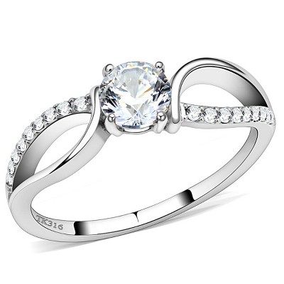 Slickblue Stainless Steel Ring with Clear CZ - Polished Finish, Women's Fashion Ring, Size 8