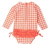 RuffleButts Baby Girls UPF50+ Sun Protected Gingham Long Sleeve One Piece Rash Guard - Coral Gingham, 3T