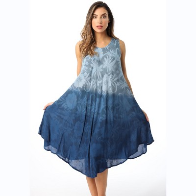 Product Name: Riviera Sun Women's Ombre Tie-Dye Summer Dress with Hand-Painted Floral Design Casual and Stylish Beachwear