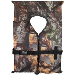 Hardcore Coast Guard approved life jackets. Type II keyhole life vest in classic May West style. Compliance flotation device. Camo Adult