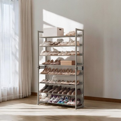 LEDREM Shoe Rack, 8-Tier Shoe Organizer, Metal Shoe Storage, Entryway, Set of 2, 4-Tier Stackable Shoe Shelf, with Adjustable Flat or Angled Shelves