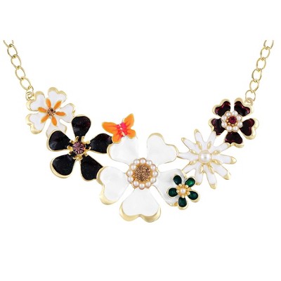 Alilang Gold Tone Multicolor Enamel Floral Statement Necklace with Pearl and Crystal Accents