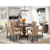 HomeStock 7 Piece Dining Set Round Table 6 Parsons Chairs Distressed Jacobean Light Sable