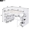 Full Size Loft Bed with Desk and Shelves, Pine Wood Loft Bed Frame with 2 Built-in Drawers & Storage Staircase, White - HABITRIO