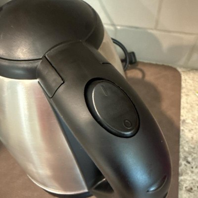 I was looking for a kettle that was no frills, easy to plug in and use without a ton of fuss. This is a great one, it has an on/off switch on the handle and boils water quick! Then the unit turns itself off as soon as it reaches boiling which I think is a great feature so we don’t have any safety issues later. Like I said, it’s simple it’s not some designer product, but that was what I was going for so I’m happy.