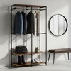 This iron and wood clothes rack is a remarkable blend of style and functionality. The combination of iron's durability and wood's natural charm makes it a standout piece for any closet or storage area. The heavy - duty construction ensures it can hold a substantial amount of clothing and accessories. The hanging rods are perfect for suspending shirts, dresses, and jackets, while the closet shelves provide a convenient space for folded clothes, sweaters, or storage boxes. The removable hooks add an extra layer of versatility, allowing you to hang bags, belts, or scarves. Whether you need to organize your daily - wear in a small apartment closet or create a more efficient storage system in a large walk - in closet, this clothes rack is an excellent choice.Material: Steel, Particleboard Product Size: 15.7"D x 37.2"W x 70.9"H (40 x 94.5 x 180 cm) Product Weight: 32.6 lb (14.8 kg) Max. Static Load Capacity: 322 lb (146 kg)