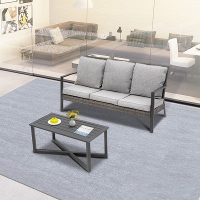 Heynemo 2 Pieces Patio Sofa with Coffee Table, Weather Rattan Chairs with Water-Resistant Cushions & Metal Frame, Outdoor Rocking Chairs, Grey White