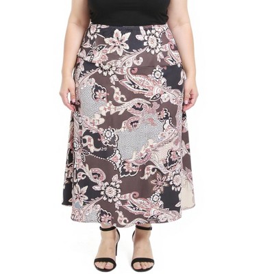 Add a pop of elegance to your wardrobe with the Black and Pink Paisley Elastic Waist A Line Plus Size Maxi Skirt. This ankle length skirt combines a stunning paisley print with a flattering A line silhouette for a look that’s both chic and versatile. The stretchy elastic waistband ensures a comfortable fit, while the soft and breathable material makes it perfect for all day wear. Whether you are heading to work, a casual outing, or a modest evening event, this maxi skirt is your go to choice for effortless style.