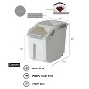 15 Liter-9.7"Wx15.6"Dx14"H, holds approximately 30 lbs of rice or 15 lbs of pet dry food.