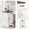 Farmhouse Nightstand with Charging Station & Barn Door & Adjustable Shelf, Rustic Sofa Side Table for Living Room, Bedroom, White
