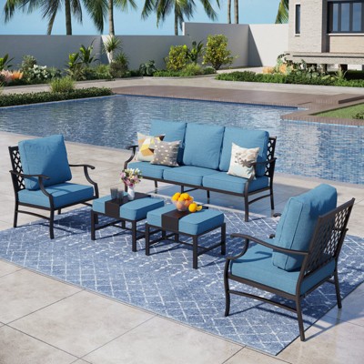 Captiva Designs 5pc Metal Patio Outdoor Conversation Set with Grid-back Armchairs and Ottomans Grey