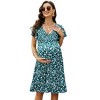 Women's Maternity Smocked Short Sleeve Summer Dress V Neck Boho Ruffle Casual Swing Midi Dress Baby Shower Photoshoot green chrysanthemum XXL