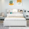 Twin Size Platform Bed, Wood Bed Frame with Bookcase Headboard, Built-in Downlight, USB Ports, and 2 Drawers, White -ModernLuxe