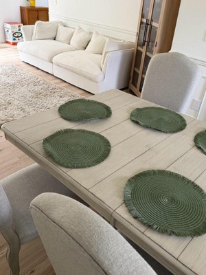 REGALWOVEN Rustic Tassel Rattan Round Wipe Clean Placemats 15 x 15 Inch 6 Pcs Beige