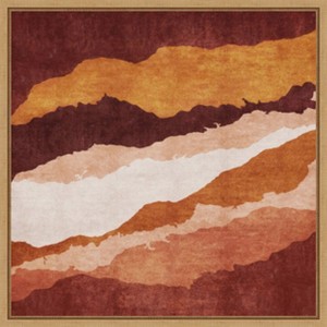 The artwork features abstract layers resembling a mountainous landscape with earthy tones. These warm colors create a textured and organic feel. The flowing lines evoke a sense of movement and natural harmony. This canvas art print was created by Emel Tunaboylu and printed in Waunakee, WI. It is stretched across a solid surface to resist sagging. We use only premium, high-tension canvas. Our exclusive stretching techniques hide corner folds and provide a taut canvas surface. The artwork is authentically licensed. The canvas appears as if it is floating in the frame because it has a narrow gap between the edge of the canvas and the frame. Our canvas items are individually made using traditional custom framing techniques, it has the quality you would expect from your local frame shop.