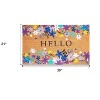 Known for it's extreme durability and ability to withstand heavy foot traffic, this 24-inch x 36-inch natural blue and purple coir floral hello outdoor door mat is an ideal option for the front door or entrance way of your home or business. Crafted from coconut husks, this mat is not only functional but is an an eco-friendly and visually appealing accessory. The naturally bristled texture of coir is an efficient way to clean dirt and mud from shoes and is easy to clean and maintain. Add this decorative mat to create a practical yet inviting welcome to all who enter. 24-inch H x 36-inch W x 0.6-inch D