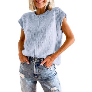 - UNIQUE DESIGN: Knitted Sweater Vest for Women/ Cap Sleeves/ Round Neck Women Tops/ Regular Length Women's Tees/ Plain Pullovers/ Summer Basic Shirts/ Slouchy Knitwear/ Ribbed Neckline Hemline/ Classy and Elegant Blouse