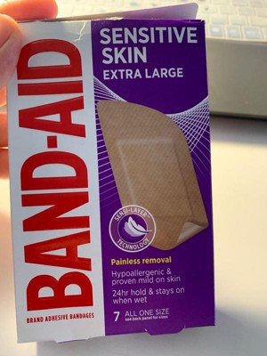 Band-Aid Extra Large Sensitive Skin Adhesive Bandages for Gentle, Non-Irritating Protection on Delicate Skin, Soft Hold for Comfortable Wear, 7 Count