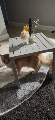 [This review was collected as part of a promotion.] This outdoor patio end table is something that I really could use because I have a lot of plants on my back porch during the spring and summer that I like to have stands for and this will allow me to not only store my shoes from my gardening underneath the end table, but also allow me to put one of my larger plants on top of it. It is a very lightweight end table that has more of a construction like finish. It’s a durable metal feeling to it with a little bit of a rough texture to allow it for easy cleaning into handle any weather condition outside.. it was very easy to put together and the packaging it came in was very lightweight and it was about eight screws with an Allen key that came with the packaging and it was very easy to put together so thank you to influence her. I would 100% recommend us to somebody looking for a nice simplistic end table for outdoors