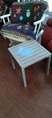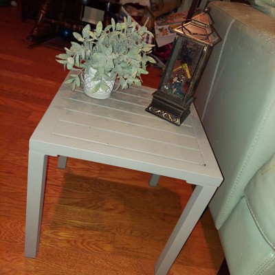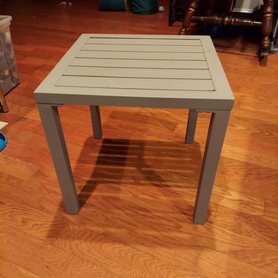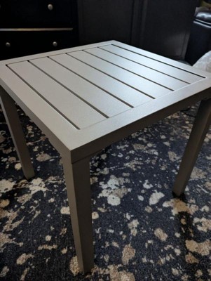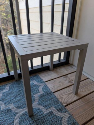 [This review was collected as part of a promotion.] This aluminum side table is the perfect addition to your outdoor furniture. I was able to assemble it in less than 15 minutes! It’s a solid piece, but light enough to move around wherever you need. The 16 x 16 size is perfect enough to fit a small plant but we’ve been using it for our evening cocktails out on the deck! I love it!!!