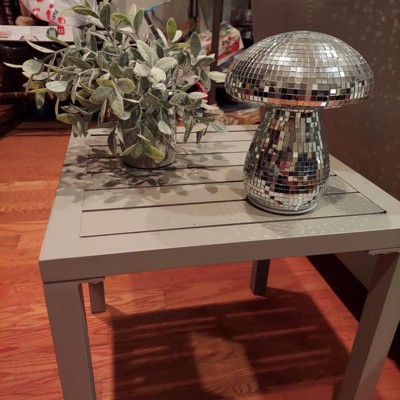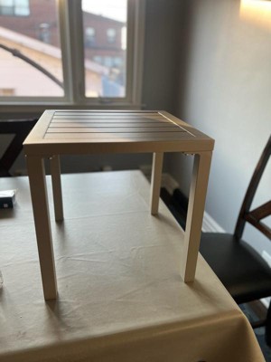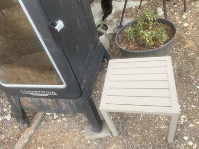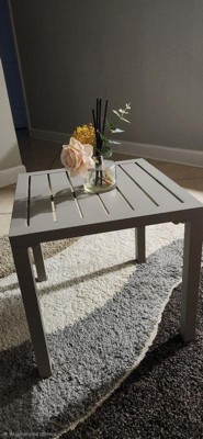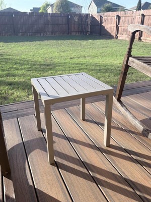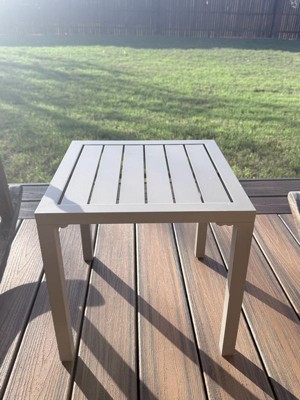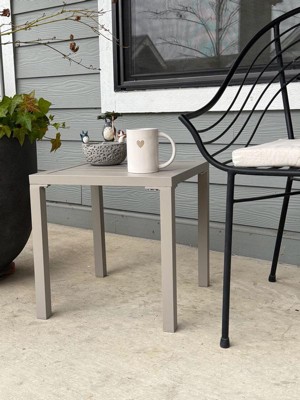 [This review was collected as part of a promotion.] Such a cute little side table! Being aluminum, it's very lightweight. Assembly was incredibly fast. I'm using it on my screened-in balcony and it's the perfect spot to put little potted plants and outdoor decor. The color is a light beige and matches my aesthetic. Funny enough, the color is almost exactly like my main outdoor table so it matches perfectly. I love how simple it is and the vibe it brings to my cozy outdoor space.