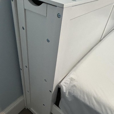 I like this bed, however: the bookcases are too heavy for the castors because they are very hard to pull out! The only way to make use of them is to leave them open! Also, there aren’t any stickers to cover the bolts so looks unfinished. It sport has a warped board on the top.