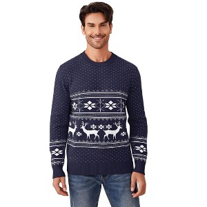 Christmas Sweater Reindeer Snowflakes Knitted Ugly Crew Neck Pullover for Men Navy Blue L