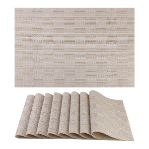 REGALWOVEN Heat Resistant Wipeable Placemats 18 x 12 Inch 8 Pcs Beige