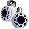 This bundle includes 2x Kicker 51KMTCXL65W 6.5" RGB LED Horn Loaded Compression Driver Marine Tower Speakers, Pair, White, and a Kicker 48KXMA4002 KXMA400.2 2x200w 2-Ch Full-Range Class-D Marine Amplifier.
